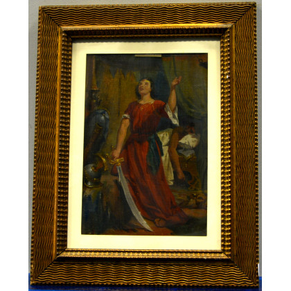Ignoto, "Scena storica". Olio su cartone telato (cm 35x25). In cornice.
