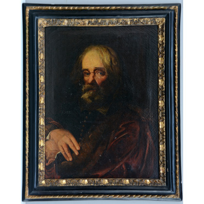Ignoto "Ritratto virile" olio su tela (cm 83x62). In cornice antica in legno ebanizzato con profili dorati