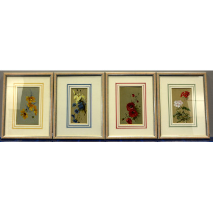 Ignoto "Fiori" gruppo di quattro tecniche miste su cartoncino (cm 22x12). In cornici.