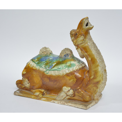 Manifattura di Cina del sec. XX. Cammello in stile 'Tang' in terracotta smaltata in policromia (cm 48x42x20) (difetti)