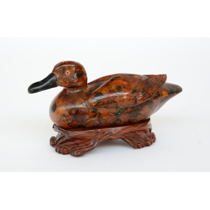 Anatra in corniola, con base in legno Cina, sec. XX (l. 20 cm.)