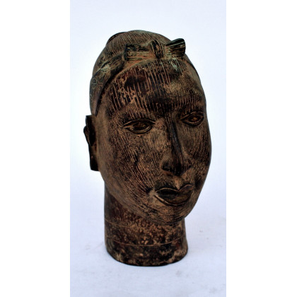 Scultura in rame raffigurante testa in stile etnico (cm h 37) (difetti)