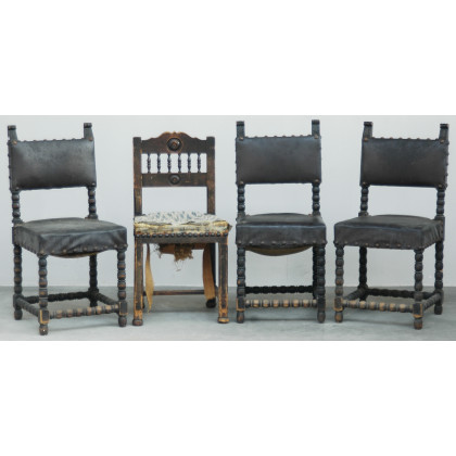 Gruppo di quattro sedie basse in stile rinascimentale (difetti)