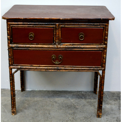 Comoncino da centro, tre cassetti, montanti e profili in bambù (cm 80x85x48) (difetti)