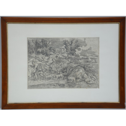 "Scena campestre" antica incisione (cm 32x42) in cornice (difetti)
