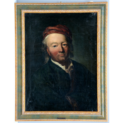 Maestro della prima metà del secolo XVIII, cerchia di Salomon Adler "Ritratto di uomo con facia rossa in testa" olio su tela (cm 66,5x49)In cornice (difetti) etichetta al retro