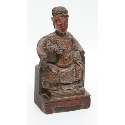 "Dignitario sul trono" scultura in legno laccato e traforato. Cina, XIX secolo (h cm 26) (difetti e mancanze)