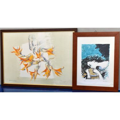 Lotto composto da una litografia di Tamburi e una di autore diverso, in cornici