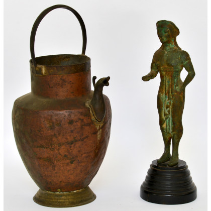 Lotto composto da un bronzo in stile arcaico e un acquamanile in rame