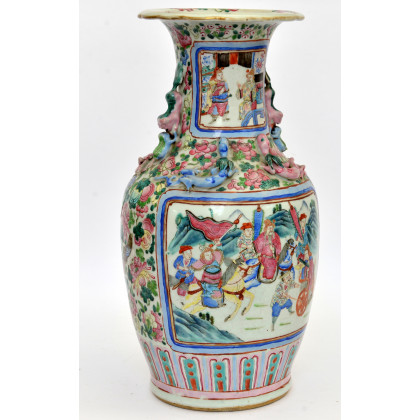 Manifattura cinese, vaso in porcellana dorato in policromia a figure e fiori (h. cm 45) (gravi difetti)