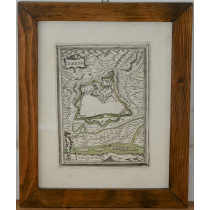 Acquaforte del sec. XVIII raffigurante pianta della città di Tortona (cm 26x20). In cornice