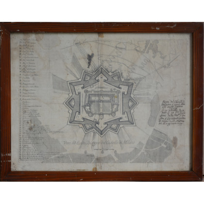 Piantina del Castello Sforzesco (cm 38x50) secolo XVIII, in cornice (difetti)