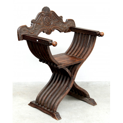 Poltrona "savonarola" con cartella intagliata e sagomata