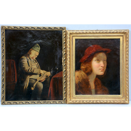 Lotto composto da due dipinti ad olio su tela alla maniera dell'antico, misure diverse.in cornici (difetti)