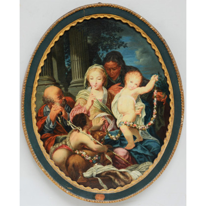 Ignoto "Sacra famiglia con S. Giovannino" olio su tela ovale (cm 60x47) Sec. XIX. In cornice