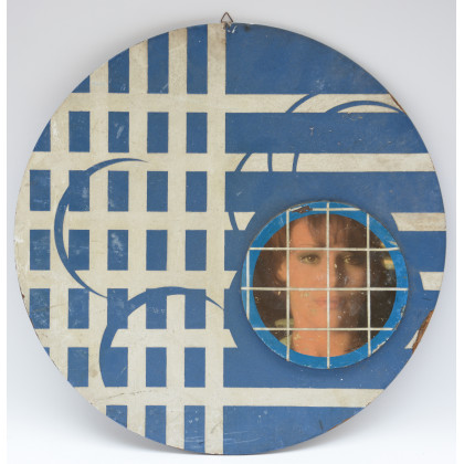 "Composizione" pannello tondo in compensato (d cm 45)firmato e datato 1979 al retro (lievi difetti)