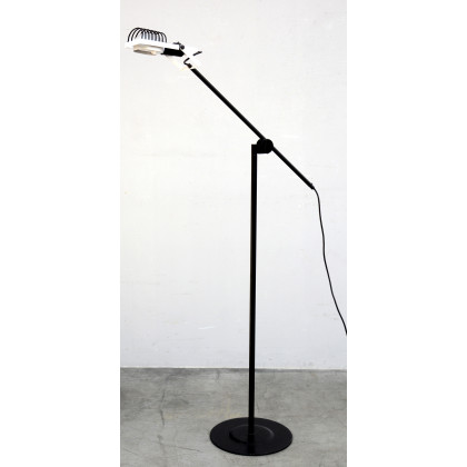Lampada da terra modello "Sintesi". Produzione Artemide, anni 70. Metallo laccato nero e bianco, plastica (h cm 154) (lievi difetti)