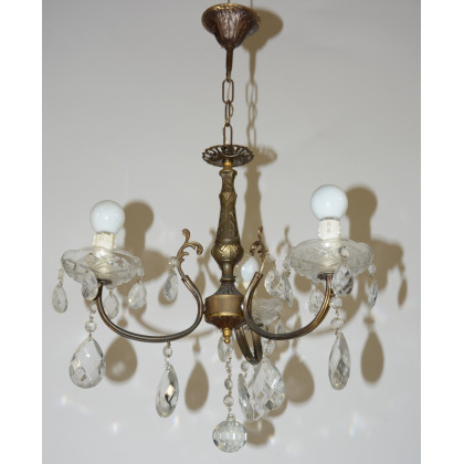 Lampadario a tre luci in metallo con pendenti in vetro (difetti)