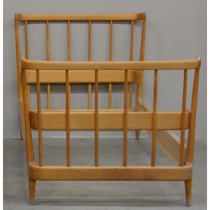 Letto singolo in legno chiaro con pediera e testiera a bacchette tornite verticali. Fine anni 30 (cm 67x92) (difetti) Provenienza: Ca' del Fogher, Cortina. Progettata dall' Architetto Pier Giulio Magistretti.