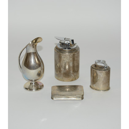 Lotto composto da due accendini, una scatola e un vasetto in argento (tit 925) (gr 400 ca)