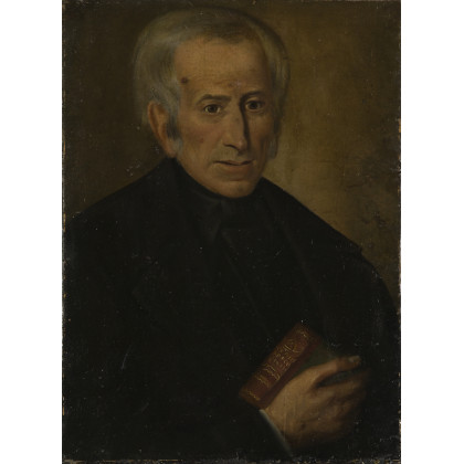 Scuola del sec.XIX "Ritratto di uomo con libro" olio su tela (cm.53x38) in cornice.(difetti e restauri)