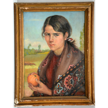 Lidia Belgiojoso - "La venditrice di arance" olio su tela (cm 59x43) Firmato in basso a destra. In cornice (lievi difetti)