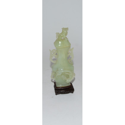 Vaso in stile arcaico in giada con base in legno, in scatola originale (gravi mancanze), Cina, sec. XX (h. 21 cm.)
