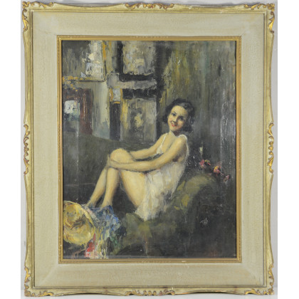 Scuola dell'inizio del sec XX "Scena d'interno con figure femminili" olio su tela (cm 70x50) in cornice