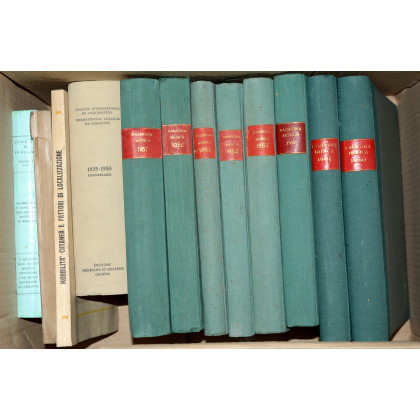 (Libri) Lotto composto da tre cartoni contenenti principalmente libri e pubblicazioni periodiche relative a varie branche della medicina, scritti in varie lingue (difetti e mancanze)
