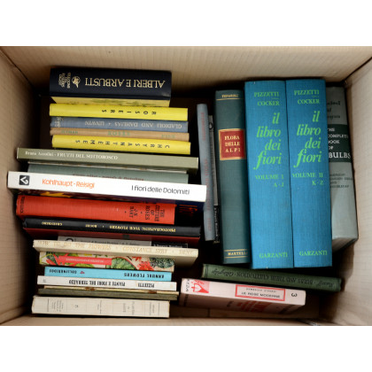 (Libri) Cartone contenente svariati volumi inerenti l'arboricoltura e la floricoltura, e alcuni sulla cura delle rose