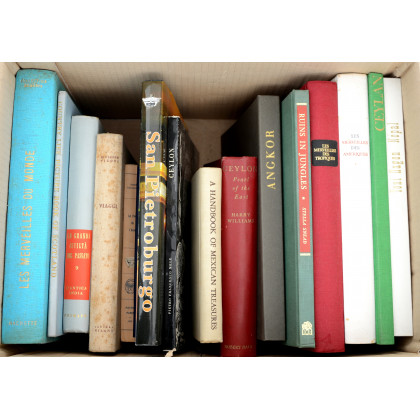 (Libri) Lotto composto da tre cartoni contenenti numerosi volumi di argomento principalmente geografico, alcuni di taglio turistico, e guide di viaggio (difetti)