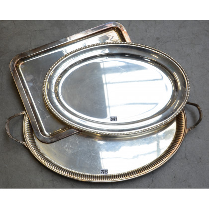 Lotto composto da tre vassoi in metallo argentato, uno dei quali marcato Christofle (lievi difetti)