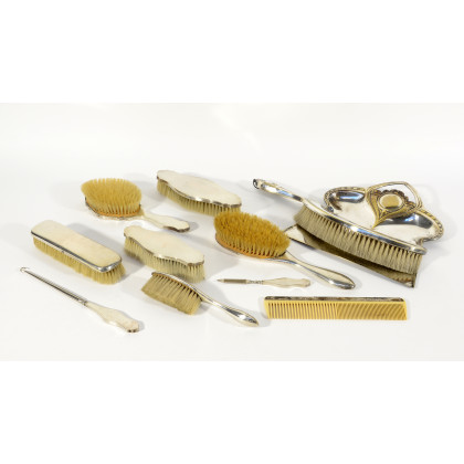 Lotto composto da undici oggetti da toeletta in argento e metallo argentato (lievi difetti)