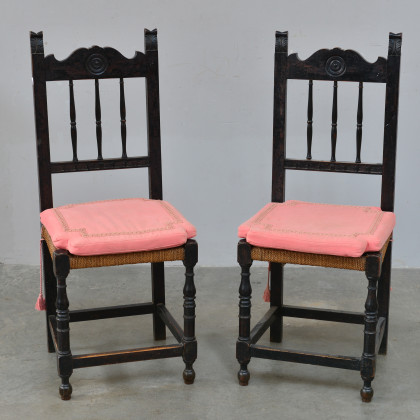 Coppia di sedie in noce con schienale decorato a listelli (difetti)