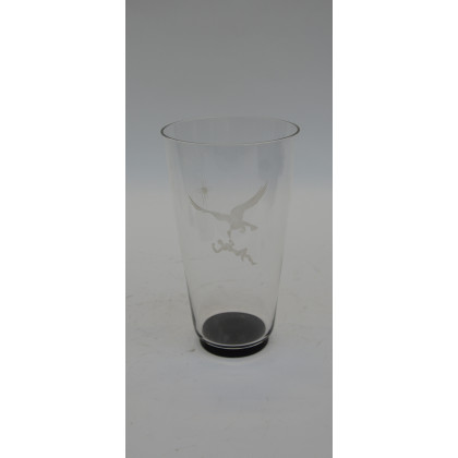 Orrefors Vaso in vetro incolore inciso al ruotino con figura di Icaro. Firmato e numerato sotto la base. Svezia, sec XX (h cm 20)