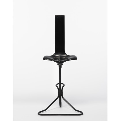 Sgabello modello "Appoggio". Produzione Sormani, Italia anni 70. Metallo laccato nero e vetroresina nera (cm 40x120x24) (difetti)