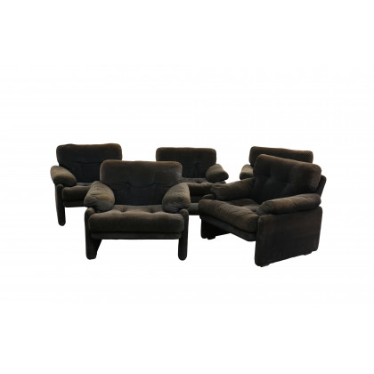 Lotto composto da cinque poltrone modello "Coronado". Produzione B&B Italia, 1966. Velluto marrone (cm 88x70x88) (difetti) Bibliografia: G. Gramigna, Repertorio del design italiano 1950-2000 per l' arredamento domestico, Allemandi, Torino 2003, vol. 1, p. 122