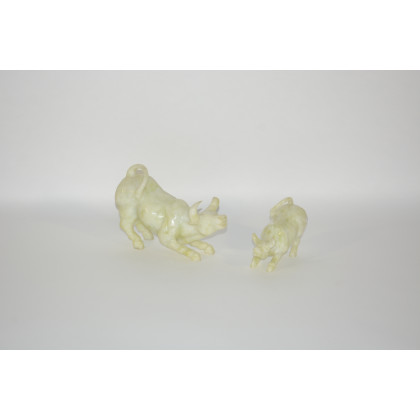 Arte orientale, lotto composto da due sculture raffiguranti tori in pietra dura (difetti).