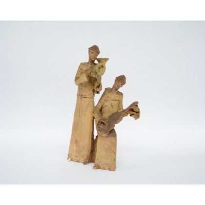 "Frati suonatori" gruppo in terracotta firmato sul retro (difetti e mancanze)