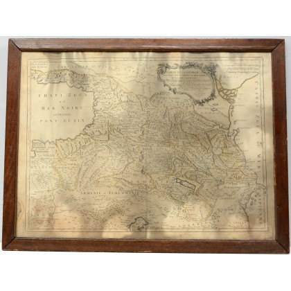 Antica mappa raffigurante la "Carte del la Géorgie et des pays situés entre la Mer Noire et la Mer Caspienne" P. Santini Venezia 1775 (cm 52x79), in cornice (gravi difetti)
