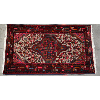 Tappeto Hamadan, Persia fine secolo XX. Disegno a medaglione su fondo bianco (cm 136x81) (difetti)