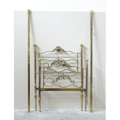Letto a una piazza in ottone con decorazioni a foglie e fiori (difetti)