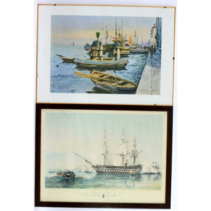 Lotto di due riproduzioni raffiguranti soggetti marini, in cornici (lievi difetti)