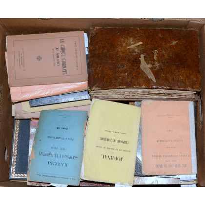 Lotto composto da diverse pubblicazioni inerenti prevalentemente il Risorgimento italiano, fra cui "Il Risorgimento" di Antonio Gramsci (Einaudi, 1954), "Notizie storiche sul Brigantaggio nelle provincie napoletane" di Marco Monnier (Barbera, 1862) (lievi difetti). In cartone.