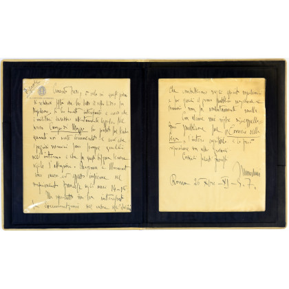 (Libri-autografi) Lettera autografa di Benito Mussolini al Generale Orlando Freri, datata 26-12-'33. Contenuta entro custodia rilegata in piena pergamena