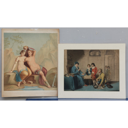 Lotto di due stampe a colori di soggetto differenti. Una in passpartout (lievi difetti).