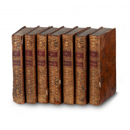 (Libri) Michel de Cervantes. Histoire de l'admirable Don Quichote... Amsterdam-Leipzig: Arkstée & Merkus, 1768. 7 volumi.