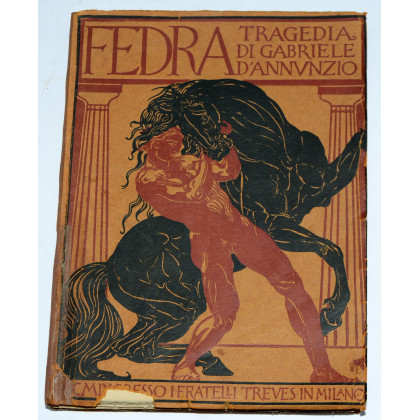 D'ANNUNZIO, Gabriele. Fedra. Milano: Fratelli Treves, 1909. Volume 4to. Prima edizione con incisioni di Adolfo De Carolis. Dedica autografa di D'Annunzio sul foglio di guardia "A Marco Praga...10 aprile 1909". Legatura editoriale cartonata in tricromia (dorso di restauro; difetti).