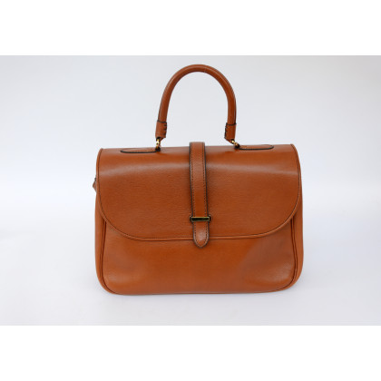COLOMBO, MILANO Borsa a busta in pelle color cognac, manico a braccio, doppia chiusura con cerniera e patella, interno in pelle (cm cm 39)