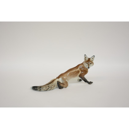 Manifattura di Rosenthal e T. Karner, "Volpe" scultura in porcellana policroma. Firmata e numerata alla base. Sec XX (l cm 42)